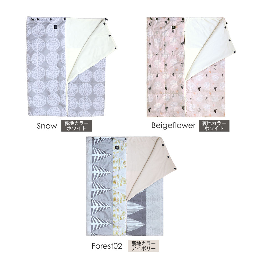 サイズ調整用のスナップボタンと、ドローコードが付いているので、膝掛けや肩掛け、腰巻等用途に合わせてご使用いただけます。