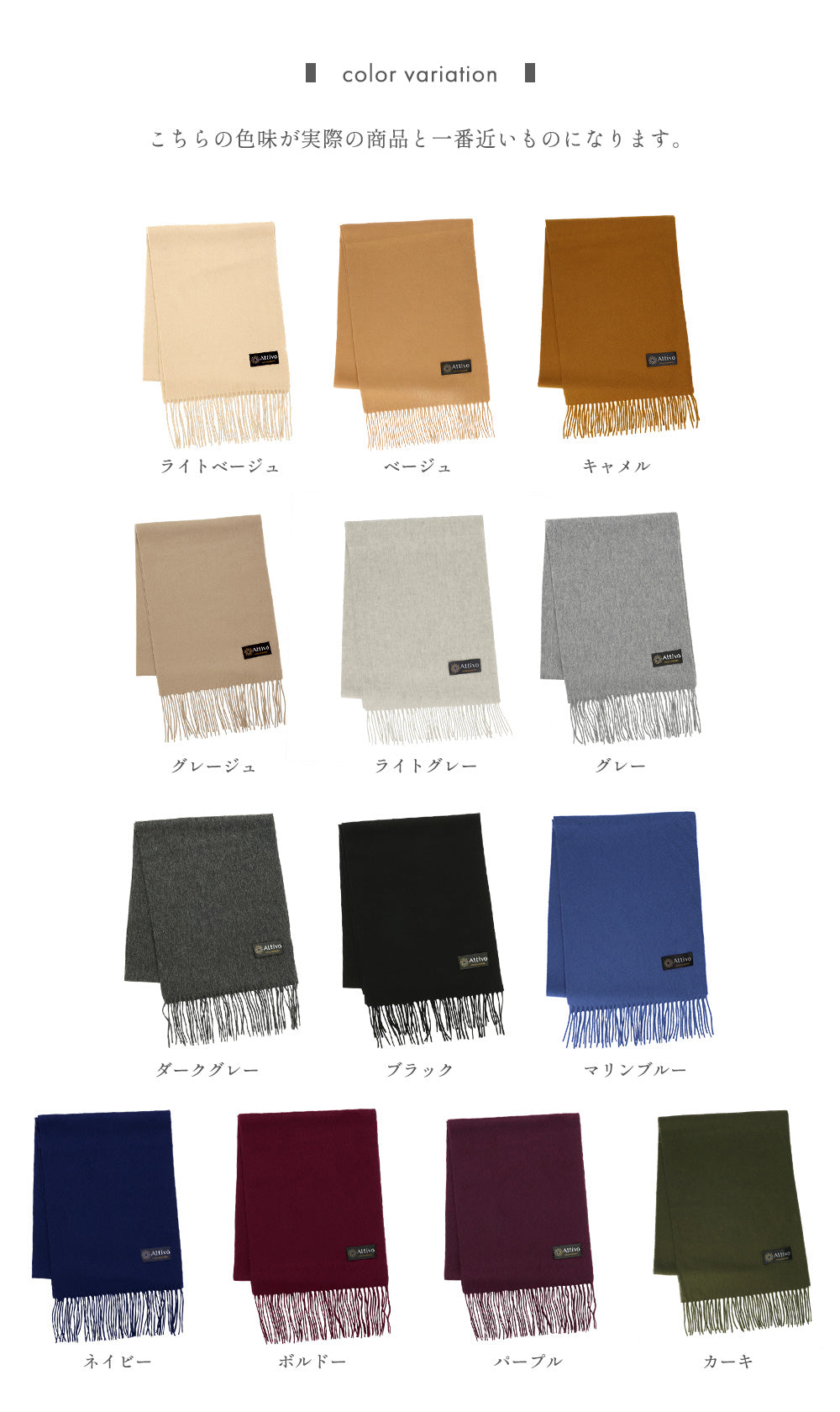 Attivo® (アッティーヴォ) カシミヤ マフラー 無地 メンズ [全13色] [ATCM01]