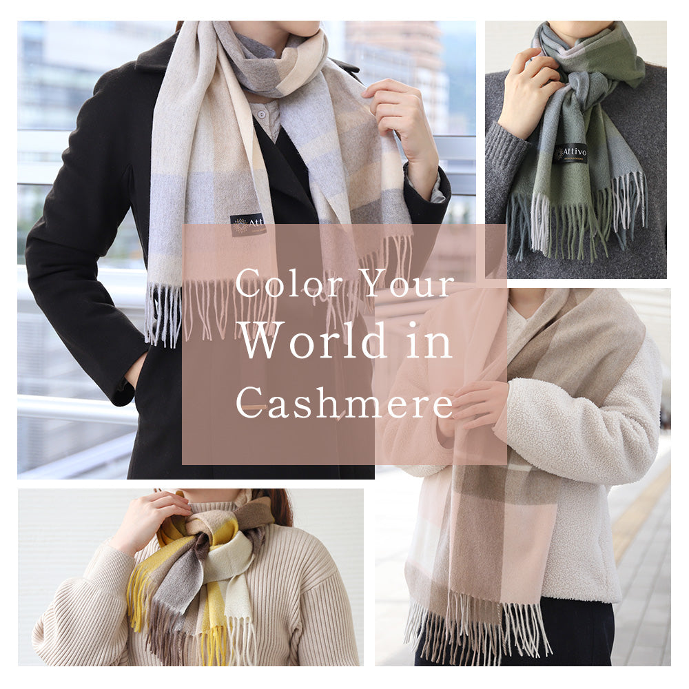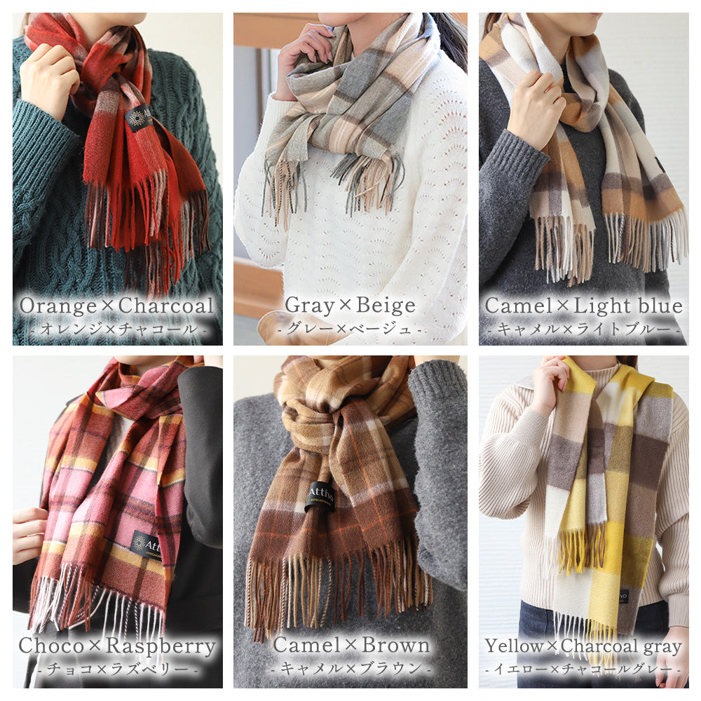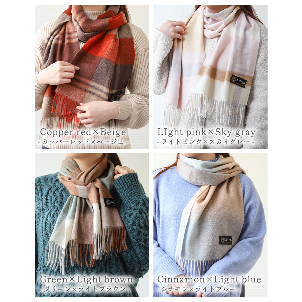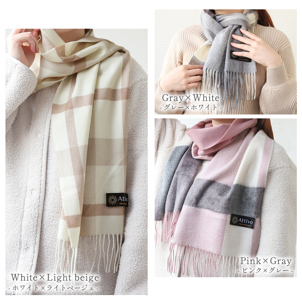 [26新春SALE|2,000円OFF5,800円] Attivo® (アッティーヴォ) カシミヤ マフラー チェック柄 レディース [全28色] [ATCM02]