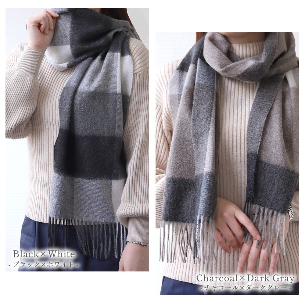 上品な光沢のあるカシミヤ100%を使用した、ユニセックスでお使い頂けるチェック柄のマフラーです。現在世界で最高品質と言われている、内モンゴル自治区で生産された希少なカシミヤ原毛を100%使用しているので、とても柔らかく滑らかな肌触りで首元を包んでくれます。使い易い長さで、両端にはフリンジの付いたデザインとなります。旬のブリティッシュデザインから女性らしいチェック柄まで豊富なバリエーションを取り揃えています。普段使いから特別なシーンまで、幅広いシーンでご使用頂けます。