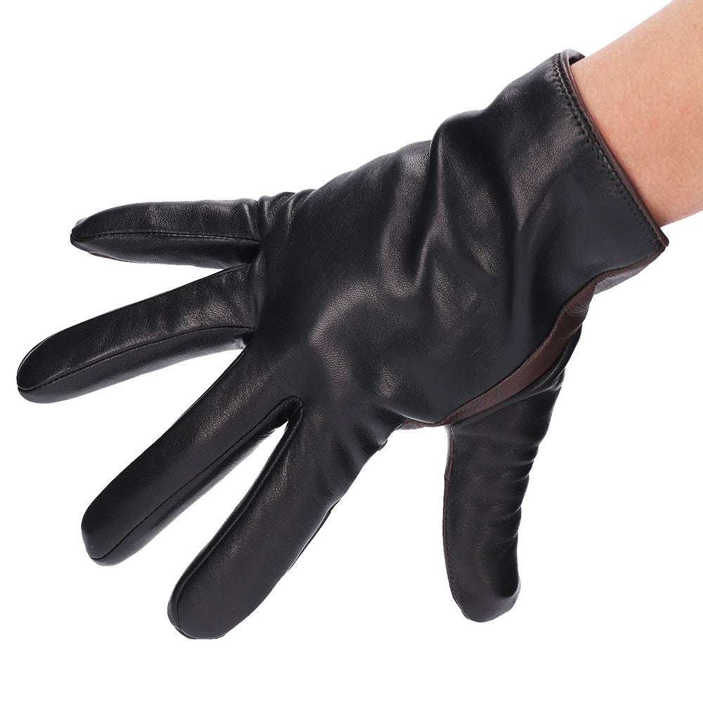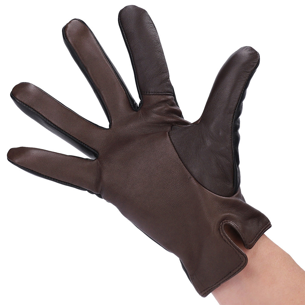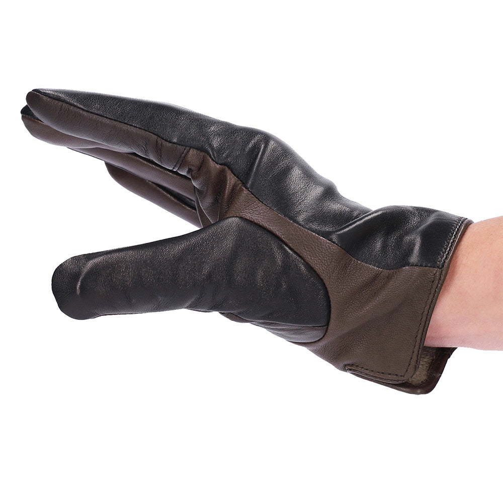 - 保温性が高く、非常にしなやかで軽く薄く柔らかい、シープスキン(羊革)を使用した男性用の手袋です。裏地はカシミヤ100%を使用しており、厳冬期においても革手袋特有の手を通した瞬間の冷たさを感じさせません。特に寒い日は、掌側の手首にレザーベルトをボタン位置を変える事で、冷気の侵入を防ぐ仕様となっています。手の甲に3本ラインが入った「三本山」は、手が最も美しく見えると言われているデザインです。イタリア製グローブは、エチオピア原皮を使用し自国で染めている物がほとんどですが、こちらの商品もイタリア製と同じエチオピア原皮を元に染料で染めているので、革その物の柔らかさが感じられ、とても軽くてしなやかな仕上がりになっています。当店オリジナルのカラーに染め上げてもらい、カラーの組み合わせからシルエットにもこだわりました。普段使いから、フォーマルなシーンまで活躍してくれます。生産拠点の工場は、ヨーロッパのファッションシーンにもアイテムを提供しているので、手のラインを美しく魅せる技術、しっかりとした縫製に長けています。スーツやコートはもちろん、レザーやカジュアルなダウンジャケットなどのアウターまで、オールマイティーに使えるベーシックなデザインも魅力です。