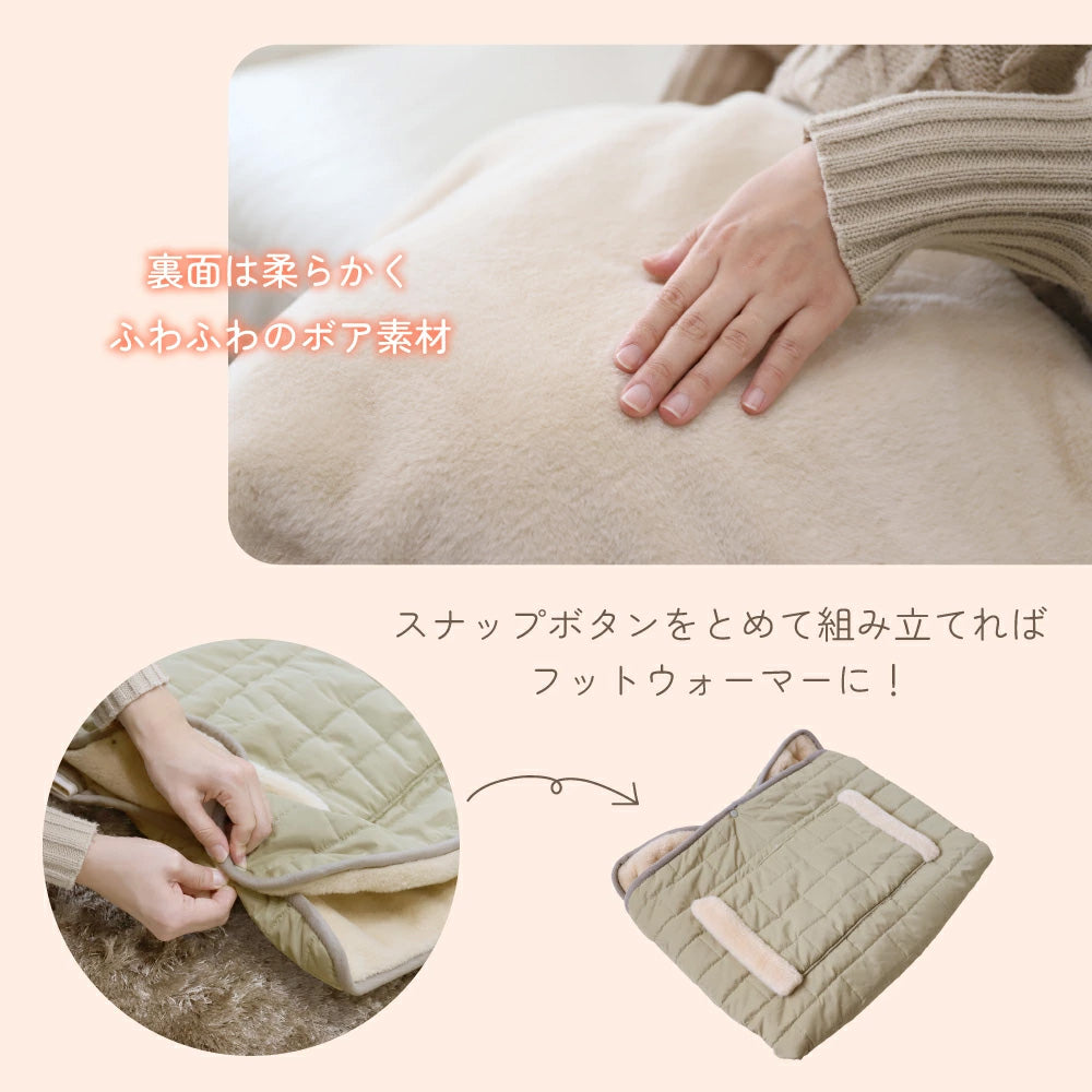 ■ブランケット、フットウォーマーの2way仕様。裏面は柔らかくふわふわのボア素材です。